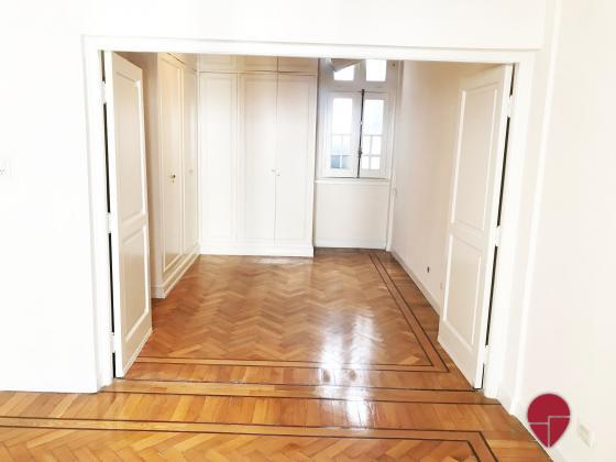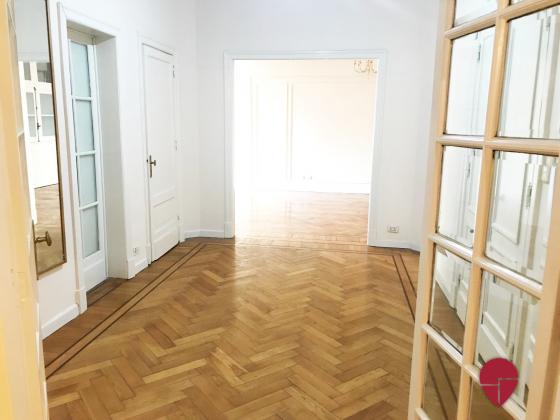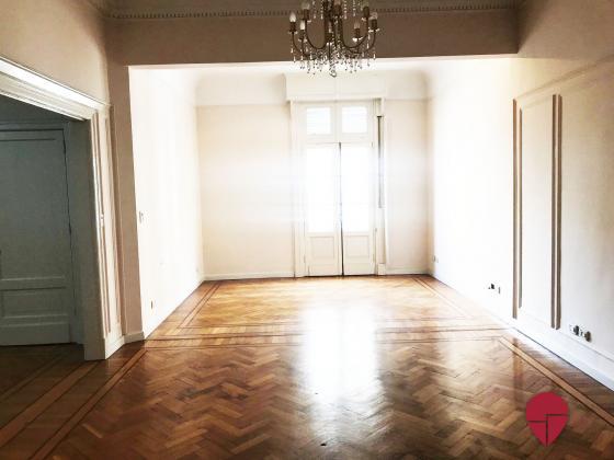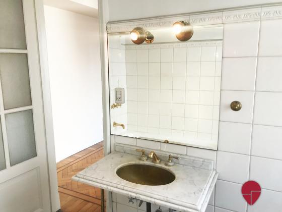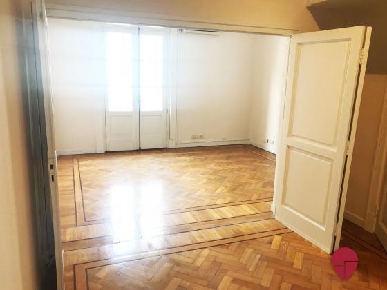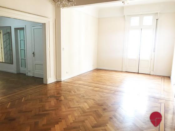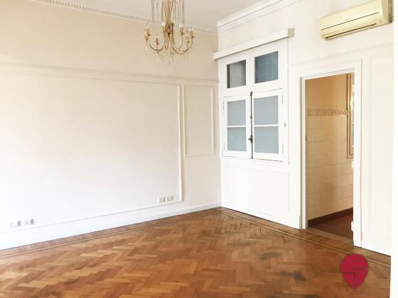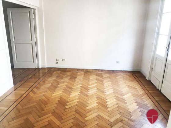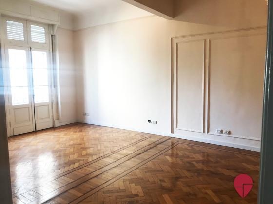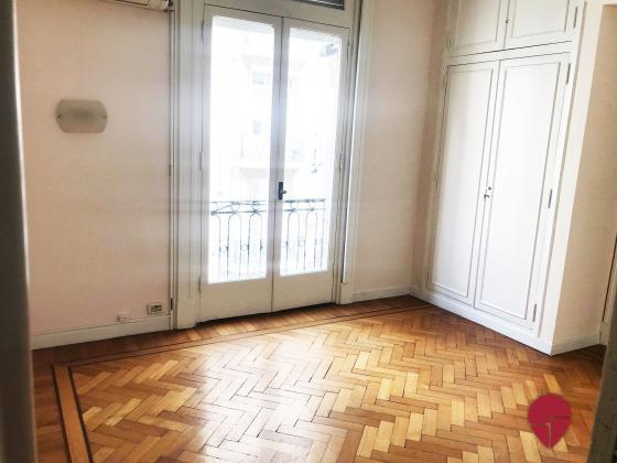 Lindísimo departamento en edificio Francés de muy buena categoría ubicado a metros de la Av. Santa Fé. Al frente, muy luminoso, con techos altos, molduras, pisos de roble, todo en excelentes condiciones. Pallier privado, amplio hall de entrada. Gran living comedor. Escritorio, sala de estar o dormitorio, con puertas de vidrio repartido. Toilette. Dos dormitorios en suite., uno con un gran vestidor que puede funcionar como tercer dormitorio. Excelentes placares. Ambos baños de muy buen tamaño, con ventana al exterior. Cocina grande, con sector de comedor diario y de lavadero. Dependencia amplia con baño. Electricidad hecha a nuevo hace pocos años. Split en todos los ambientes. Termotanque eléctrico.