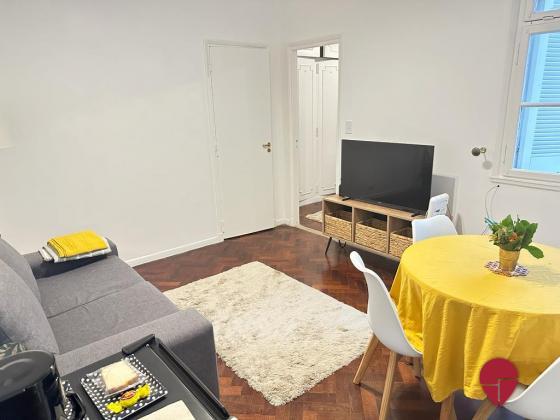 Departamento de un dormitorio todo reformado y equipado a nuevo, muy bien ubicado en el barrio bajo Belgrano, a pasos de Av. del Libertador y costa distancia de la estación de tren ranal Mitre, con rápido acceso a distintos puntos de la ciudad. Es muy luminoso y acogedor. Posee un living con un confortable sillón, mesa de comedor con 4 sillas, y TV. El dormitorio ofrece una cama matrimonial o dos camas single, según se requiera, y un amplio placard. Hay un baño completo con bañadera, y la cocina está muy bien equipada con heladera, horno, microondas, vajilla, y todo lo necesario para una cómoda estadía.