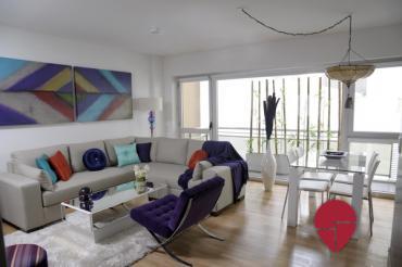 Es un departamento tipo studio de estilo moderno y ubicado a 2 cuadras de la plaza San Martin. Esta ubicación ofrece diferentes medios de transporte como, la estación de subte, la estación de tren y variadas líneas de colectivo. A su vez, tiendas, restaurantes y bares. El departamento ofrece un dormitorio con una cama matrimonial o dos camas singles a pedido del huésped, un amplio ropero y un baño completo en suite que se encuentra en impecable estado. El living comedor se encuentra equipado con un cómodo sillón, una TV LCD, una mesa baja y lindos objetos de decoración que la propietaria ha traído de sus viajes por Asia. La cocina es moderna y se encuentra abierta al sector del living, se encuentra muy bien equipada. El departamento ofrece un sector de comedor con una mesa de vidrio y sillas de estilo moderno. Se encuentra todo impecable ofreciendo un confort y una buena ubicación.