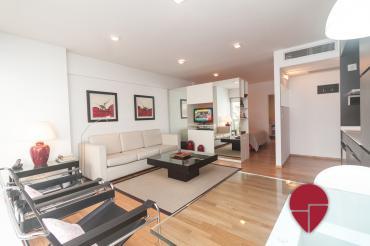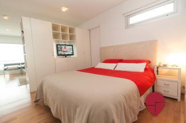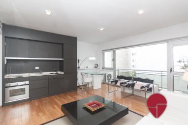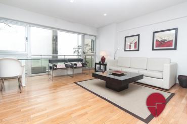Es un departamento tipo studio de estilo moderno y ubicado a 2 cuadras de la plaza San Martin. Esta ubicación ofrece diferentes medios de transporte como, la estación de subte, la estación de tren y colectivos de larga distancia de retiro y variadas líneas de colectivo. A su vez hay variados restaurantes y bares en la zona. El edificio cuenta con una pileta descubierta para los meses de verano, un gimnasio, un laundry y sauna. El departamento ofrece un dormitorio con una cama matrimonial, un espacioso ropero y un amplio e impecable baño completo con bañadera en suite. El living comedor se encuentra equipado con un cómodo sillón, una TV LCD, una mesa baja y una mesa para comer con dos sillas. La cocina es moderna, bien equipada y está abierta al sector del living. Se encuentra todo impecable ofreciendo confort y una buena ubicación.