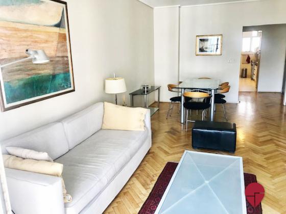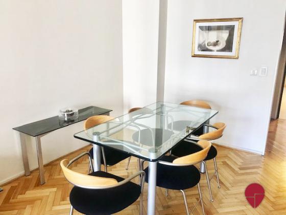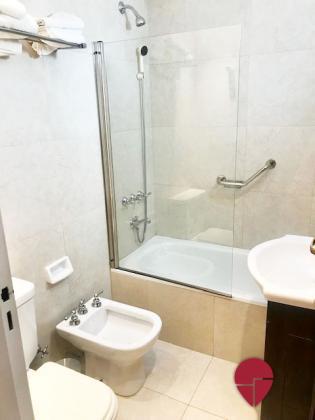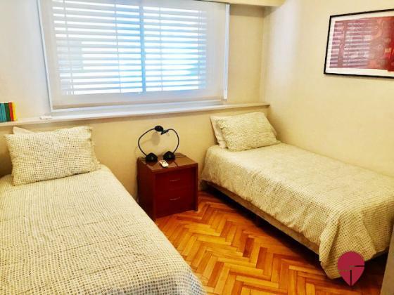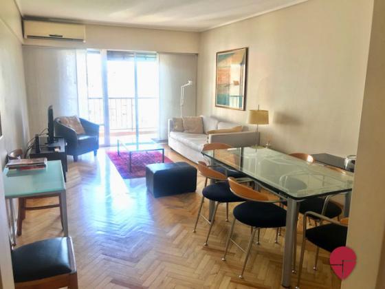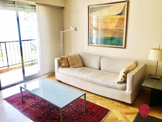 Muy lindo y elegante departamento ubicado en una de las zonas mas exclusivas de Buenos Aires, rodeado de elegantes negocios, restaurantes y hoteles. Su decoración y amoblamiento ofrece confort, ambientes cálidos pero a su vez modernos. Posee dos amplios dormitorios, y dos baños completos con bañadera (uno de ellos en suite). El dormitorio principal ofrece una cama matrimonial y muy bueno placard, tiene un gran ventanal con salida al balcón equipado con mesa y sillas. El segundo dormitorio posee dos camas single y amplio placard. El living comedor ofrece cómodos sillones, una mesa de comedor para seis personas y también tiene salida al soleado balcón con una muy linda vista al pulmón de manzana. La cocina sestá completamente equipada con un sector de lavadero con lava ropas. En este sector se encuentra el dormitorio de servicio que funciona como escritorio con su propio baño con ducha.