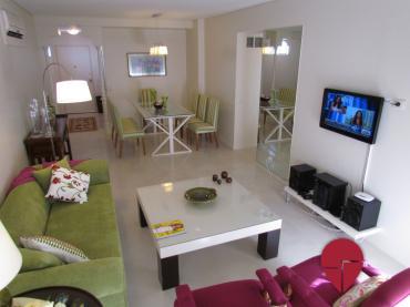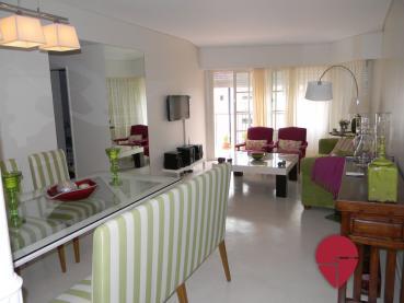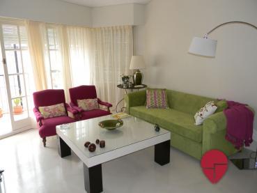 Espectacular departamento de dos dormitorios con terraza, ubicado en un edificio con seguridad 24 hs en la mejor zona de Recoleta. El mismo ha sido recientemente amoblado y decorado con un gusto exquisito, en un estilo alegre. Posee un living comedor con cómodos sillones, una mesa de comedor, y salida a la lindísima terraza. Hay dos dormitorios, el principal con cama matrimonial, y el segundo con dos camas single, ambos muy luminosos ya que dan a la terraza. El baño es completo, alegre y con buena ventilación. Hay un toilette. La cocina es amplia y está totalmente equipada, posee una mesa para desayunar, y un sector de lavadero.