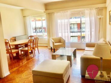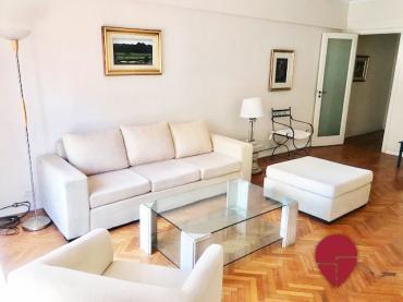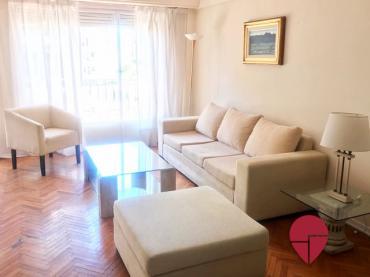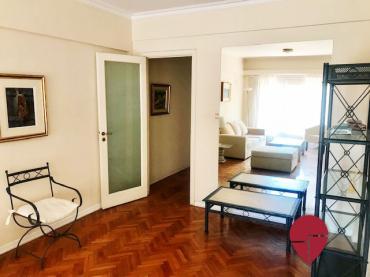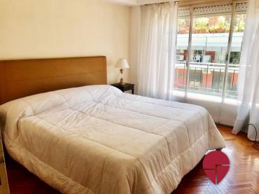 Muy luminoso departamento de dos dormitorios mas escritorio o tres dormitorios muy bien ubicado en Recoleta, a pocas cuadras del barrio de Palermo, a una cuadra de las Avenidas del Libertador y Las Heras por lo cual posee una conexión muy rápida con los principales puntos de la ciudad. Rodeado de parques, bares y restaurantes. Amplio living comedor con comodos sillones, una mesa de para seis comensales, con salida a un muy lindo balcón con mucho sol ideal para sentarse a tomar algo. Dormitorio principal con cama matrimonial, buenos placards, y salida a otro balcón. Segundo dormitorio luminoso con una cama single y un escritorio (o se puede colocar una segunda cama) y placard. Hay un tercer dormitorio pequeño con una cama single, o se puede usar como escritorio. Un baño completo con bañadera y un toilette. Pequeño baño de servicio. La cocina es amplia, con una mesa para desayunar, y está bien equipada. Lavadero independiente (no posee lavarropas).