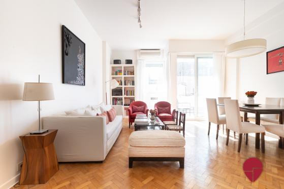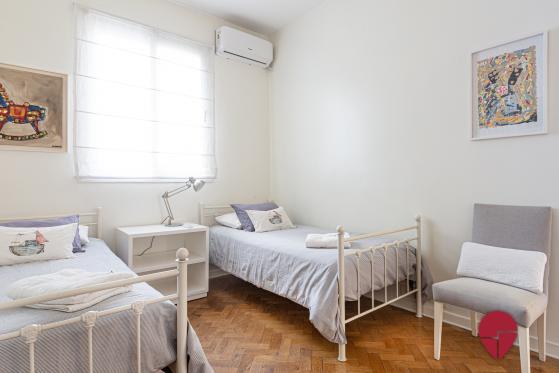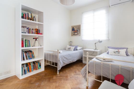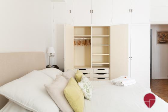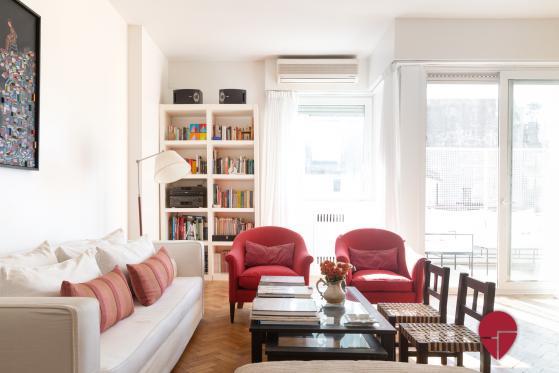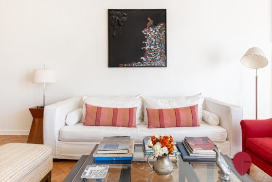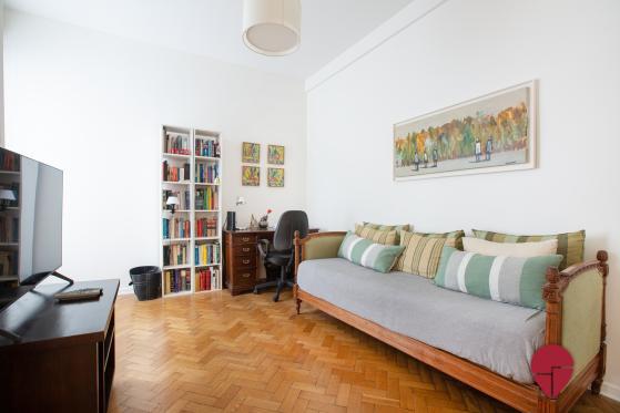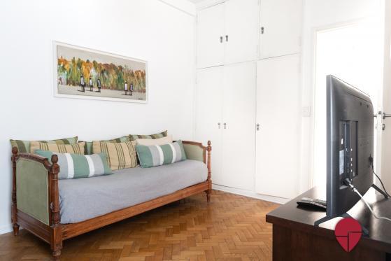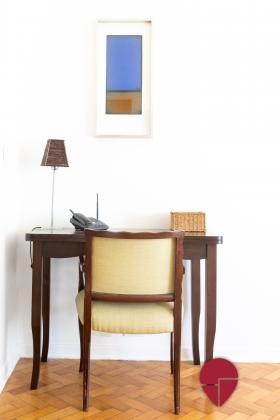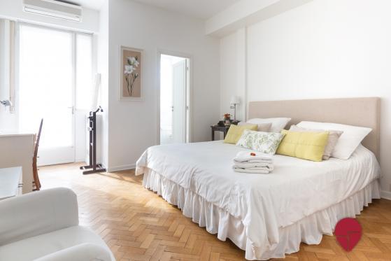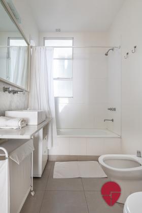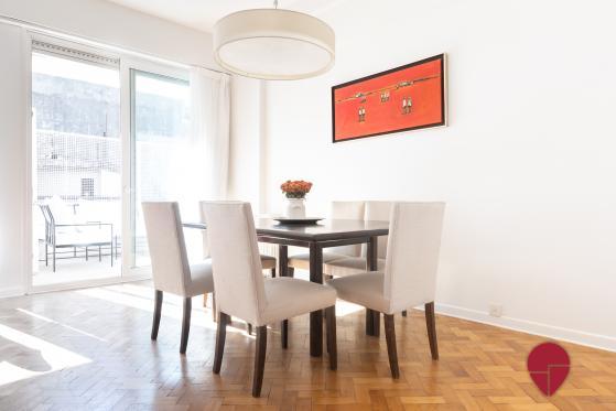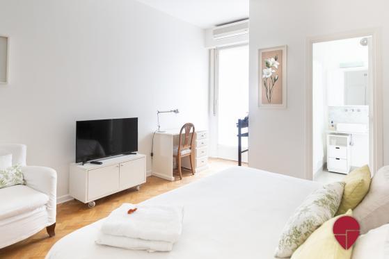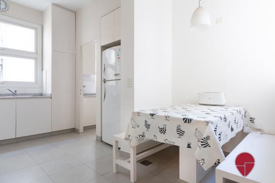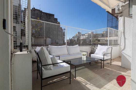 Impecable departamento de tres dormitorios (uno funciona como escritorio) más dependencia, muy bien decorado y equipado. Ubicado en Recoleta a pasos de Avenida Callao, con acceso a medios de transporte y rodeado de restaurantes y negocios comerciales. Amplio living comedor con salida a una soleada terraza con mesa y sillones. El living posee cómodos sillones y una mesa de comedor para seis personas. Dormitorio principal en suite, es muy amplio y posee excelentes placares. El baño es completo con bañadera y posee ventilación y luz natural. El segundo dormitorio ofrece dos camas single y un amplio placar. Hay un tercer ambiente que funciona como escritorio o sala de estar con TV. El segundo baño es completo con bañadera. La cocina muy bien equipada es muy amplia, con comedor diario y lavadero independiente. Hay una habitación de servicio impecable con su baño en suite.