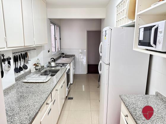 Luminoso y cómodo departamento ubicado en el barrio de Recoleta sobre avenida del Libertador, una de las principales arterias que conectan los principales puntos de la ciudad. Living comedor con cómodos sillones y mesa de comedor para cuatro personas. Dormitorio principal con cama matrimonial y amplio placar. Segundo dormitorio con una o dos camas single y amplios placares. Impecable baño completo con bañadera. Una amplia cocina muy bien equipada con heladera, horno, microondas, lavarropas y todo lo necesario. Posee una dependencia de servicio con una cama single y un baño con ducha.